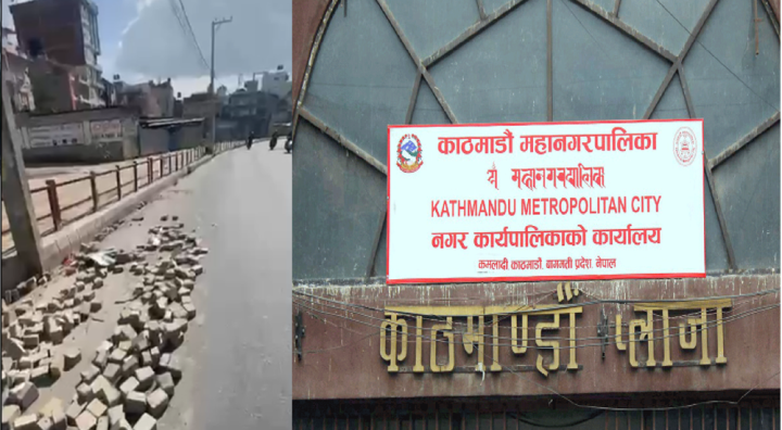 निर्माण सेवाले सडकमा सामग्री थुपारेपछि महानगरद्वारा १ लाख जरिवाना