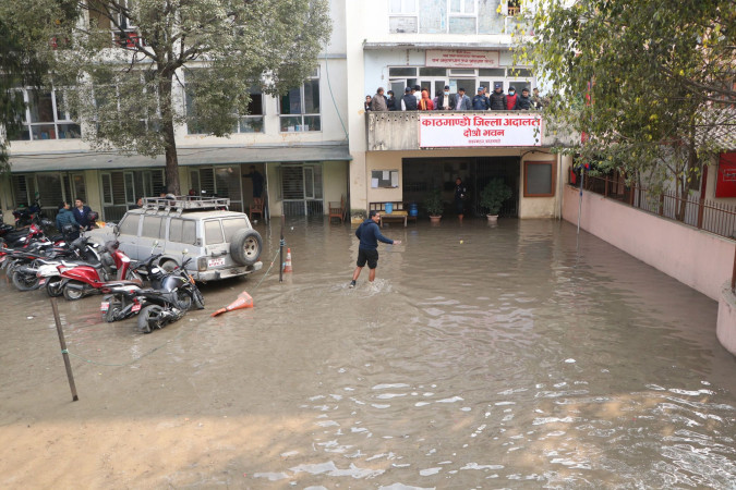 मेलम्ची खानेपानीको पाइप फुट्दा बबरमहल जलमग्न, विशेष अदालतको भवन डुबानमा