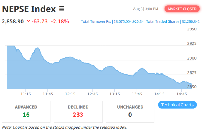 नेप्से परिसूचकमा भारी गिरावट, २९०० विन्दुभन्दा तल झर्यो