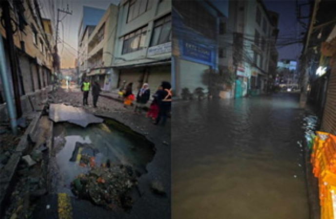 थापाथलीमा मेलम्ची खानेपानीको पाइप फुट्दा सडक अवरुद्ध