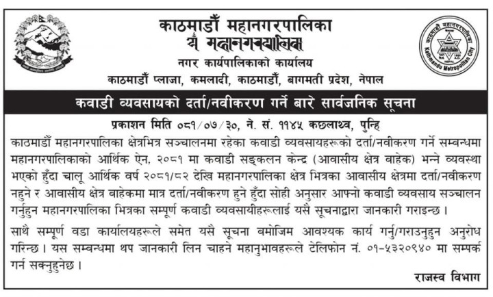 काठमाडौँ महानगरपालिकाले कवाडी व्यवसाय दर्ता/नवीकरणमा नयाँ नीति लागू गर्यो