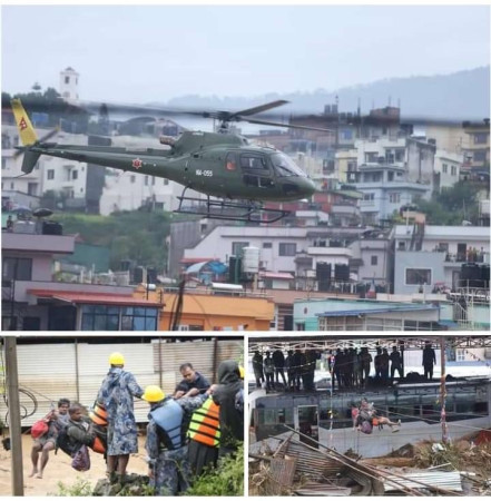कुसुन्तीमा बाढी प्रभावितको नेपाली सेनाको हेलिकोप्टरद्वारा उद्दार