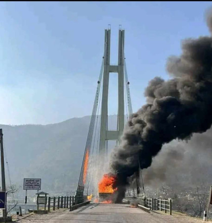 कर्णाली पुलमाथि ट्रकमा आगलागी।